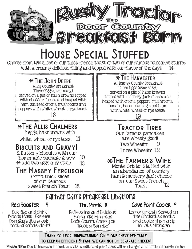 Welcome to the Rusty Tractor - Door County - Breakfast Barn, a charming destination nestled in the heart of Egg Harbor, WI. This unique breakfast spot at 6216 WI-42 offers diners a delightful experience that blends rustic charm with mouthwatering dishes. As you approach the barn, the inviting atmosphere promises a culinary journey unlike any other.